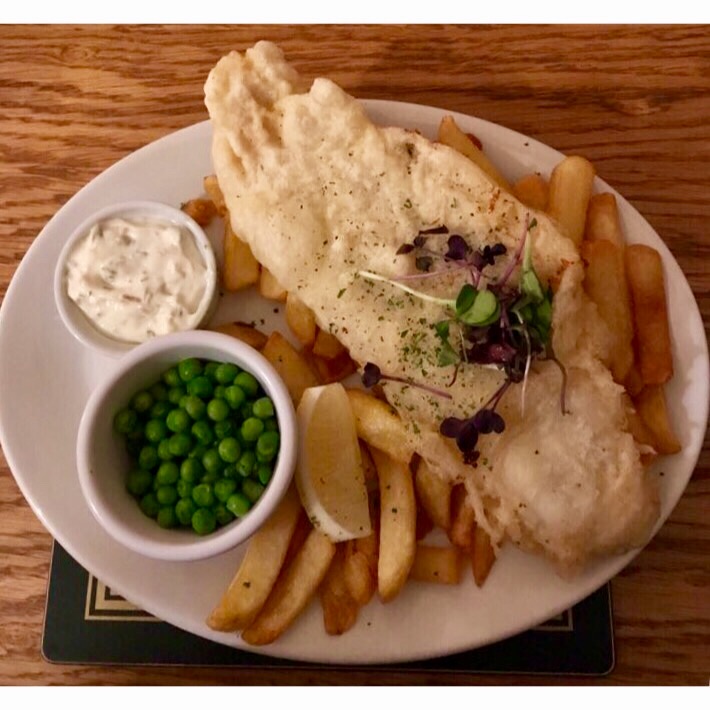 The fish arrived, dominating much of the long dinner plate. The batter was light-coloured, piping hot and had extra crunch when I broke a piece off the end of the fillet to test the texture. The helpful waitress told me that the batter was made with a gluten free flour blend, including tapioca and rice flour which gave what can usually be quite heavy and greasy, a lighter, crunchier feel. The chips served on the side were large cut and crispy but of course my main focus in this case was the fish which conquered me about half way through. I have heard many with gluten allergies and coeliac disease describe just how unaccustomed their bodies have become to heavy food and I totally sympathise. In this case however, I was truly upset I could not finish given the kitchen at The Spotted Cow had got the taste and texture of the battered fish spot on.
